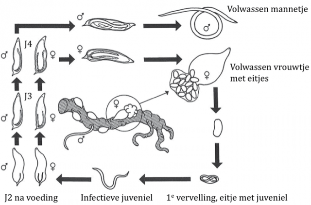 De levenscyclus van wortelknobbelnematoden