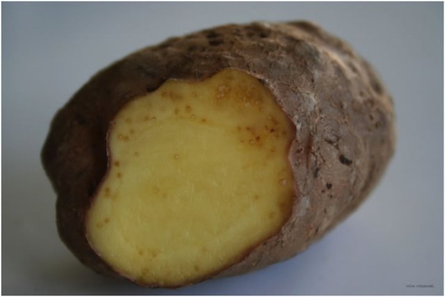 Foto 4: Volwassen vrouwtjes en eipakketjes van Meloidogyne chitwoodi binnenin een aardappel (foto Wim Wesemael, ILVO)